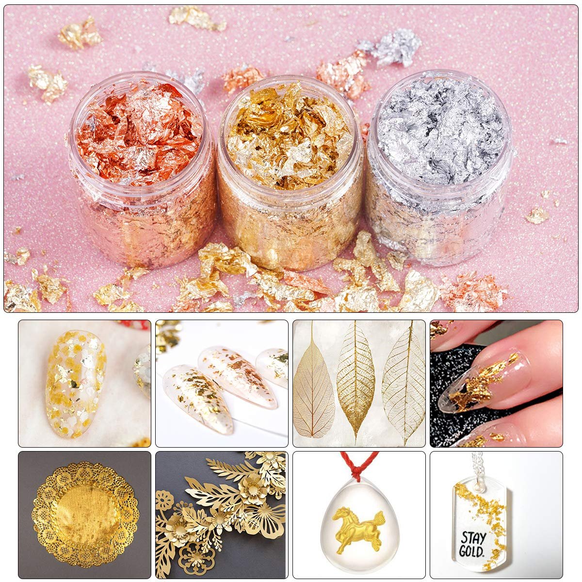 SOLVER Leaf Flakes- Metallic SILVER Flakes for Nail Deco, Resin Art and Craft Offer
