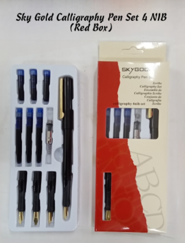 SKY GOLD CALLIGRAPHY PEN SET – 4 NIB (RED BOX) ₹240.00 In Stock This product has been added to 8 people'scarts.Order on WhatsAppIn Stock SKY GOLD CALLIGRAPHY PEN SET - 4 NIB (RED BOX) quantity Add to Cart Add to wishlist Category: CALLIGRAPHY PEN Description Reviews (0) Description 1 PEN, 3 NIB, 6 CARTRIDGES, 1 ROCKER BLOTTER Reviews There are no reviews yet. Be the first to review “SKY GOLD CALLIGRAPHY PEN SET – 4 NIB (RED BOX)” Cancel replyYour email address will not be published. Required fields are marked *Your rating * Rate… Perfect Good Average Not that bad Very poor Your review *Name * Email * Save my name, email, and website in this browser for the next time I comment. Related products Add to wishlistCompare In StockCLICK CALLIGRAPHY PEN BLUE BOX₹148.00Add to Cart Add to wishlistCompare In StockSKY GOLD CALLIGRAPHY PEN SET – 7 NIB (RED BOX)₹420.00Add to Cart Add to wishlistCompare In StockACTIV CALLIGRAPHY PEN REX 4 SECTION₹184.00Add to Cart Add to wishlistCompare In StockSKYGOOD CALLIGRAPHY PEN 6 SECTION ACRYLIC BOX₹470.00Add to Cart Add to wishlistCompare In StockSKYGOOD CALLIGRAPHY PEN 2 PEN 5 NIB 16 CARTRIDGE₹400.00Add to Cart